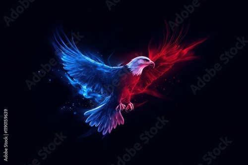 © narin, Obraz premium eagle and background flag USA