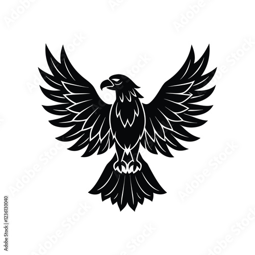 © Ali, Obraz premium Eagle Bird Silhouette Vector Icon Black and White Background.
