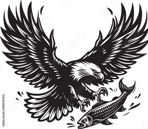 © Creative Juel , Fototapeta premium Eagle catch fish icon logo vector, Silhouette design with white background