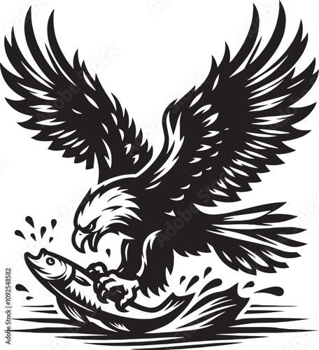 © Creative Juel , Fototapeta premium Eagle catch fish icon logo vector, Silhouette design with white background