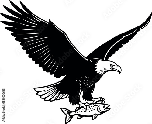 © Daniyal, Obraz premium Eagle catching fish vector illustration silhouette cricut design
