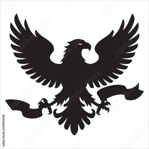 Obraz premium Eagle Clutching a Banner Silhouette, Eagle With Banner