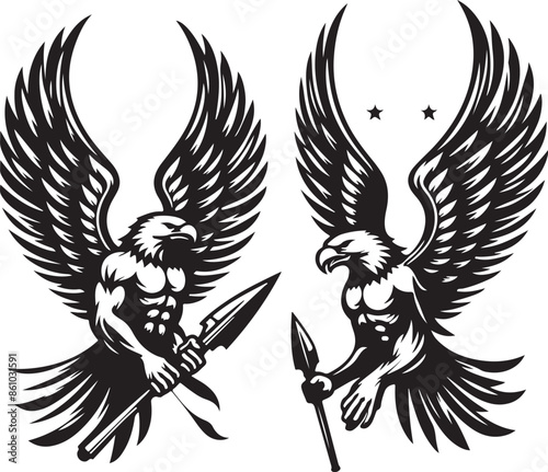 © MUSTAFIZUR, Obraz premium Eagle design silhouette vector art work EPS file, Generator AI