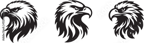Obraz premium Eagle Face Vector Silhouette Set Front, Side,