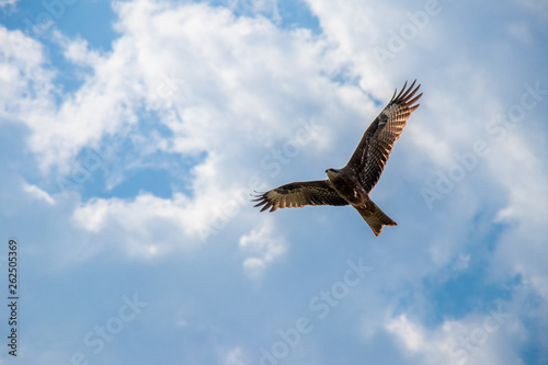 © Virender Singh, Fototapeta premium Eagle flying across the blue sky