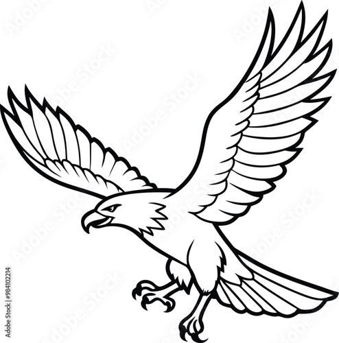 Obraz premium eagle flying bird line art vector illustration silhouette, Print