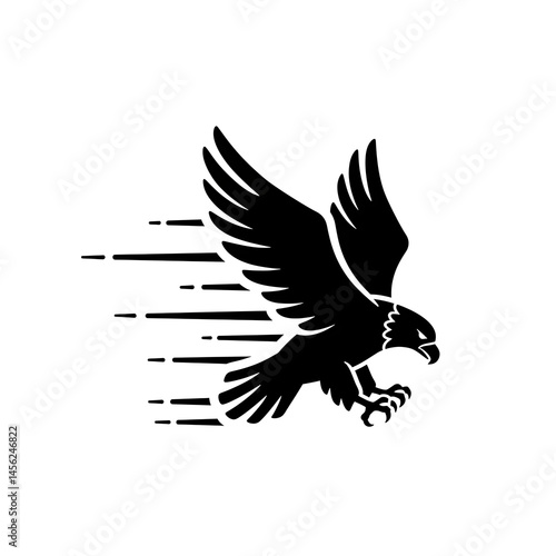 Obraz premium Eagle Flying Black Silhouette Graphic