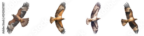 © Sawera, Fototapeta premium Eagle flying isolated on transparent background, PNG, Set of