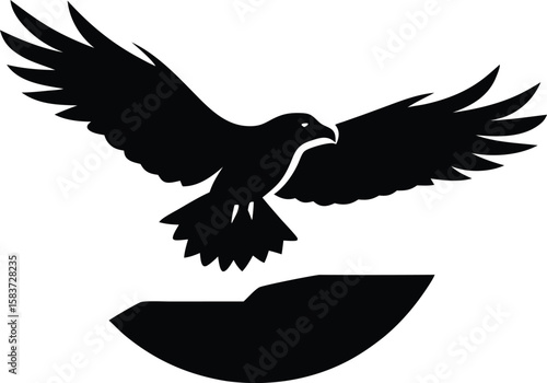© JhumaRaniDas, Obraz premium Eagle Flying Over Cliff Silhouette Vector Art Illustration