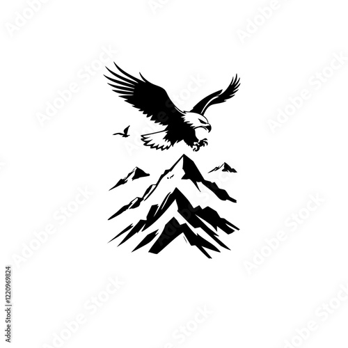© isuru, Naklejka premium Eagle Flying Over Mountain Vector Logo Design