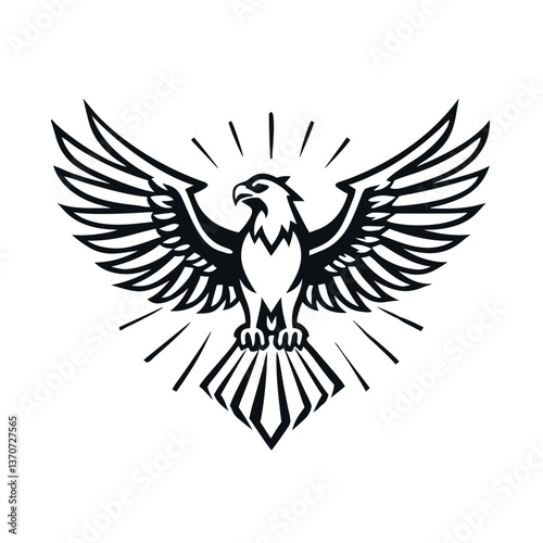 © Nataly, Fototapeta premium Eagle flying with open wings against a sunburst background