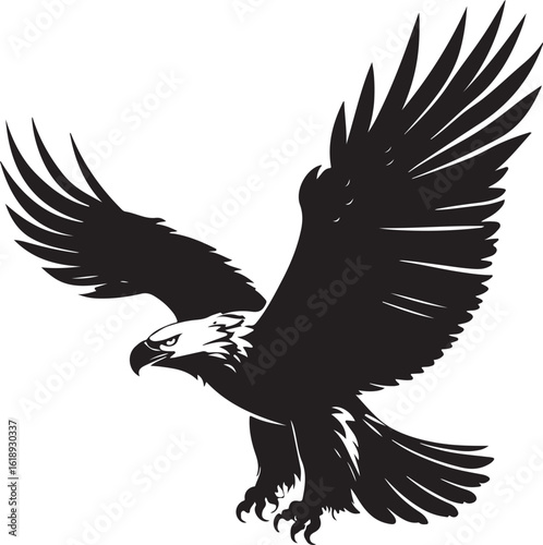 © Raihan, Fototapeta premium Eagle flying with wings wide silhouette