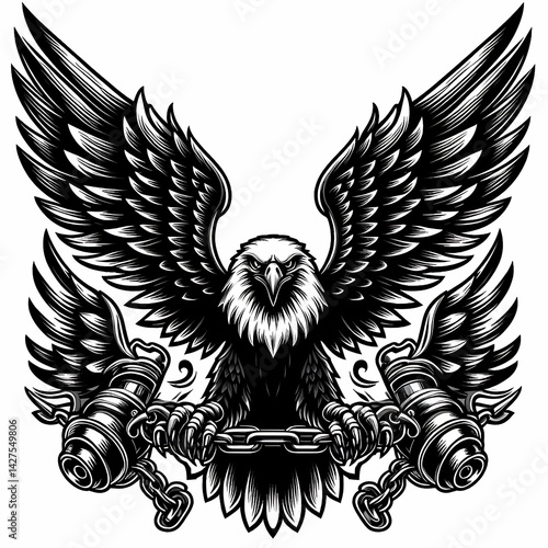 Obraz premium Eagle Freedom with Chains Illustration ideal for dashboard visualization widgets