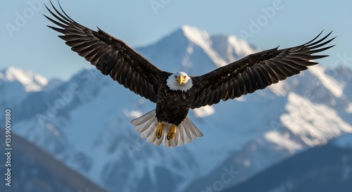 Obraz premium Eagle Gliding Over Majestic Mountain Range