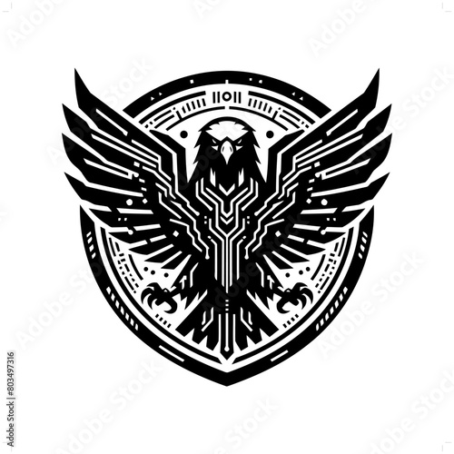 © orion, Obraz premium Eagle, hawk bird silhouette in animal cyberpunk, modern futuristic illustration