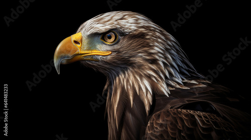 © TilluArt, Obraz premium eagle head closeup with dark background generative ai