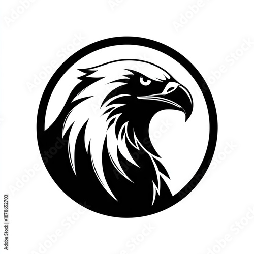 © irul, Fototapeta premium Eagle head in profile inside a black circle illustration