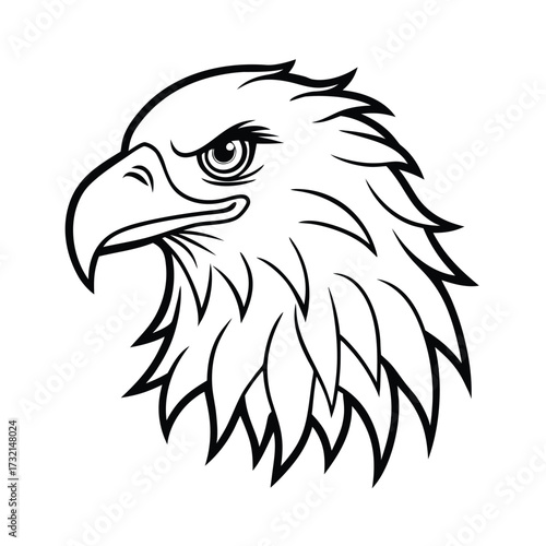 © tonniee, Fototapeta premium Eagle Head Line Art | Black and White Eagle Face Outline Drawing