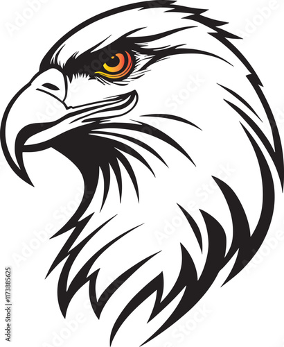 © DesignVirtuoso, Obraz premium Eagle Head Silhouette Logo Illustration, Bird falcon logo design, eagle or hawk badge emblem vector icon