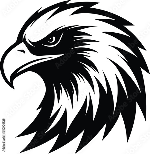 © VectorEliteX, Obraz premium eagle head silhouette, sharp beak, profile view
