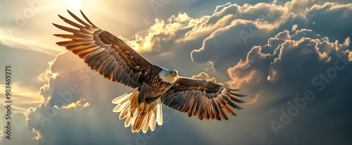 © pasakorn, Obraz premium Eagle in Flight. A magnificent eagle in mid-flight, its wings sp