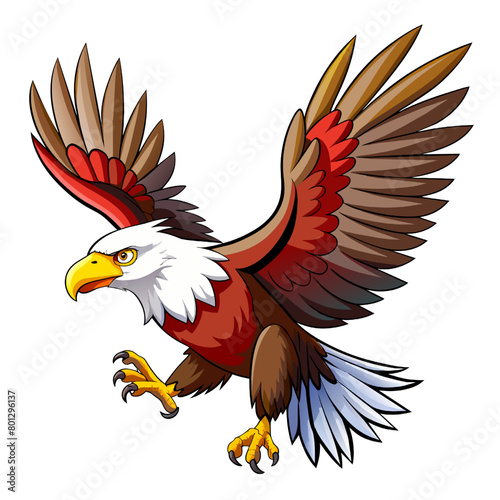 © wannasak, Obraz premium Eagle in flight. Cartoon vector illustration isolated on white background.
