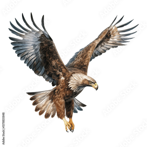 © PNG , Obraz premium Eagle in flight, shadowless, super detailed, sharp, whole image, highest resolution, realistic on a white background.