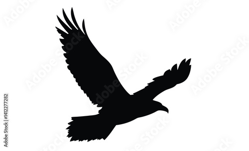 Obraz premium Eagle in flight silhouette, Bird vector icon, Soaring eagle graphic, Flying bird illustration