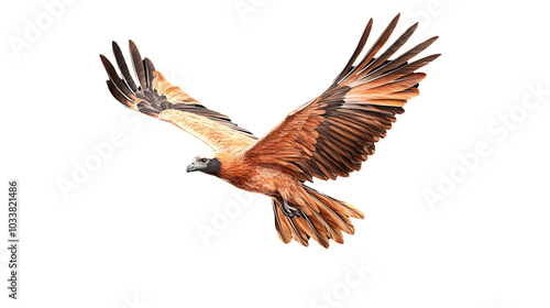 Obraz premium Eagle in flight, wings spread, vibrant plumage, white isolate background