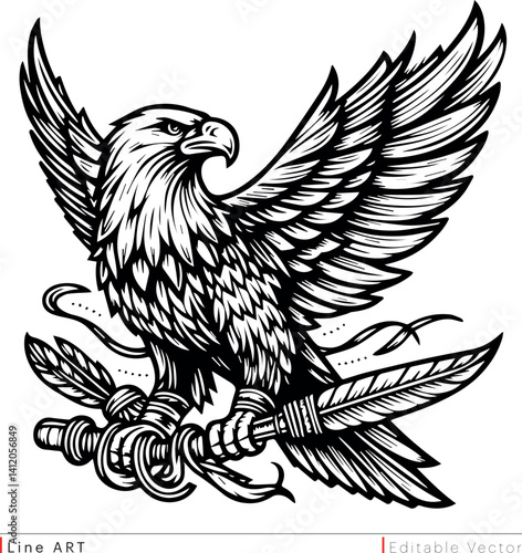 © Wallura, Obraz premium Eagle Line Art vector Editable Ai
