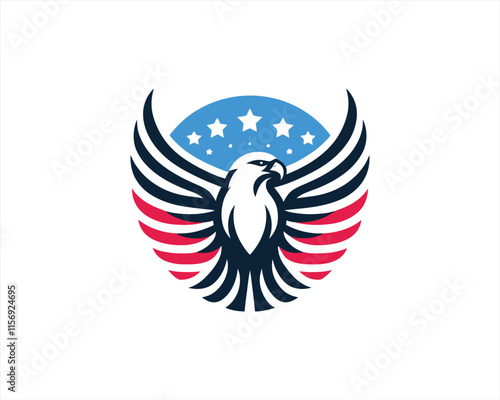© Mamun360, Obraz premium Eagle logo design vector illustration in American flag color. American Eagle icon logo template.