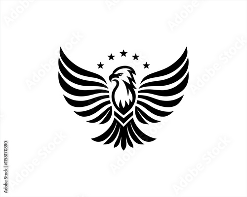 © Mamun360, Obraz premium Eagle Logo Design Vector Template. Black and white silhouette eagle vector illustration.