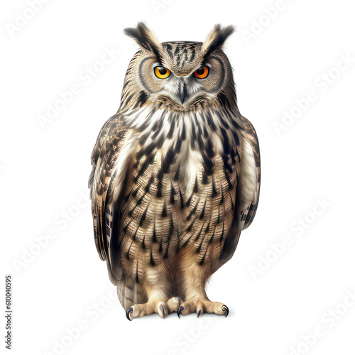 Fototapeta premium Eagle owl isolated on white created with Generative AI
