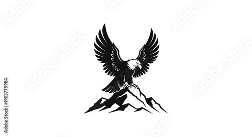 © Yoamn, Fototapeta premium Eagle perched on mountain peak illustration