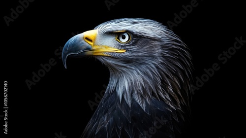 © NFTNexus, Obraz premium Eagle portrait featuring a black backdrop