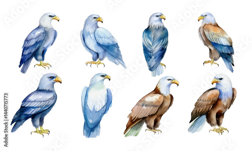 Fototapeta premium Eagle set Water color illustration on isolated background