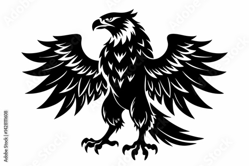 © pipp99, Fototapeta premium eagle silhouette line art vector illustration with a white background