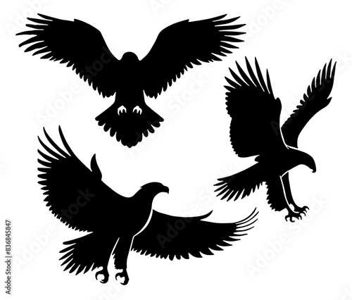 Obraz premium Eagle Silhouette: Majestic Bird, Symbol of Freedom, Predator, Flat Vector...