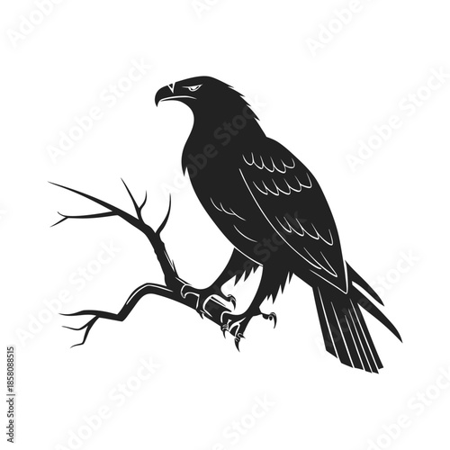 Obraz premium Eagle Silhouette Perched on Branch – Vector Illustration