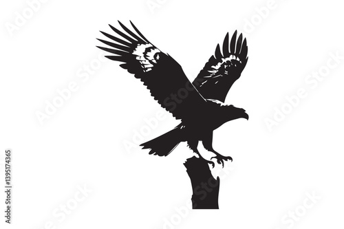Obraz premium Eagle Silhouette Perched Vector Majestic Bird of Prey Clipart Design