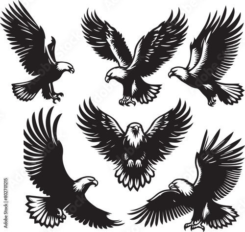 © rashel, Fototapeta premium Eagle silhouette set. Eagle illustration