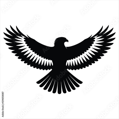 Obraz premium Eagle Silhouette Vector Flight Wings Spread Bird Freedom Majestic Powerful...