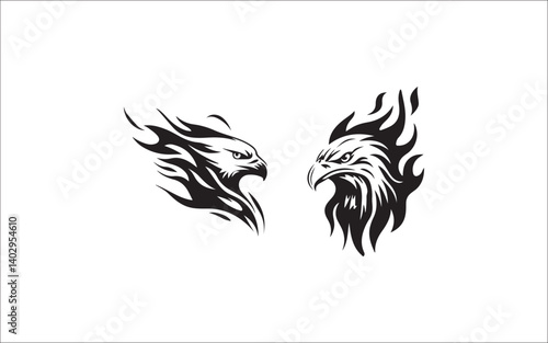 © Delwyara, Fototapeta premium Eagle Silhouette Vector Icons: Flying Predator Bird Logos & Head Designs