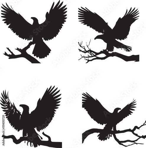 Obraz premium Eagle Silhouette Vector Set – Majestic Bird of Prey and Wildlife Design Elements