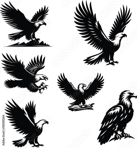 © HmYousuf, Fototapeta premium Eagle silhouette vector white background eagle illustration