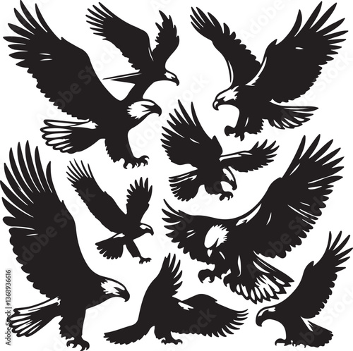 © chhaifunnahar, Obraz premium eagle silhouettes vector white background