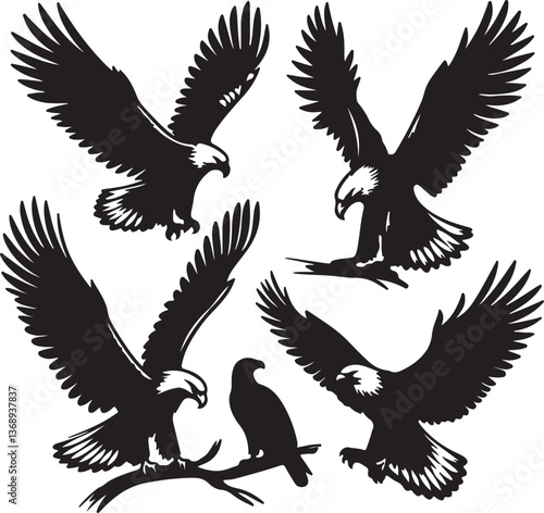 © chhaifunnahar, Obraz premium eagle silhouettes vector white background
