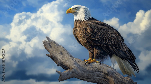 © Narayana, Fototapeta premium eagle sitting on a dry tree in a blue sky background