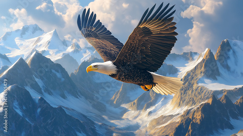 © Jackpot, Obraz premium Eagle soaring above snowy mountains