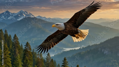 Fototapeta premium Eagle soaring high, symbolizing freedom.